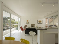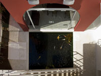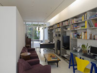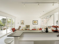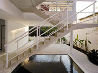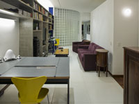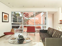 Foi dada atenção especial à iluminação, natural e artificial.Também se procurou obter grande integração com o exterior, “trazendo” as árvores da rua para a paisagem da sala, o tanque de carpas para o estúdio inferior e o jardim do fundo para o escritório.